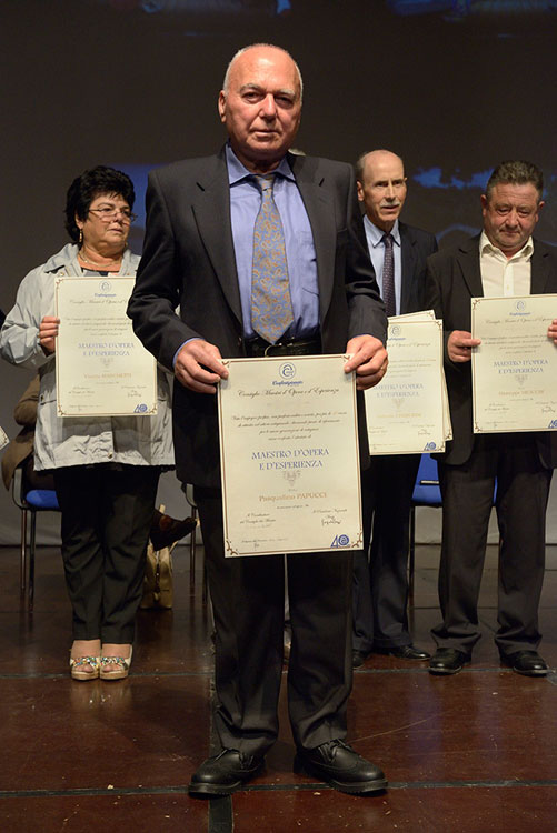 Durante la manifestazione sono stati premiati, come Maestri d’opera ed esperienza Carlo Schettino, Romano Baroni, Carla Ragazzini, Giuliana Succi, Mario Montechi, Luigino Aldinucci, Gino Marchetti, Fabio Burioni, Roberto Batazzi, Egidio Tizzi, Antonio Donato, Ferdinando Comanducci e Roberto Gentile.
